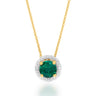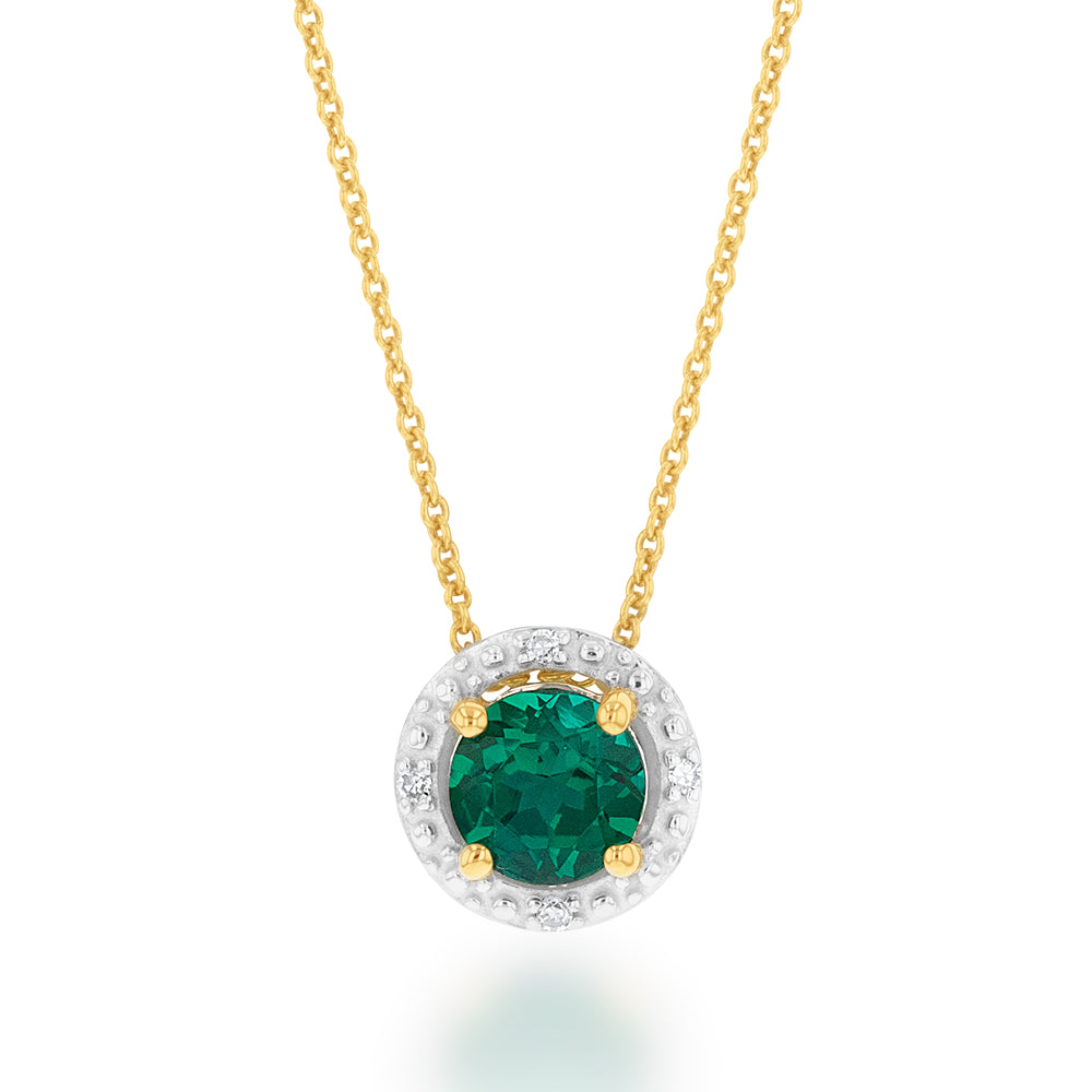 9ct Yellow Gold Created Emerald and Diamond Halo Pendant on 45cm Chain