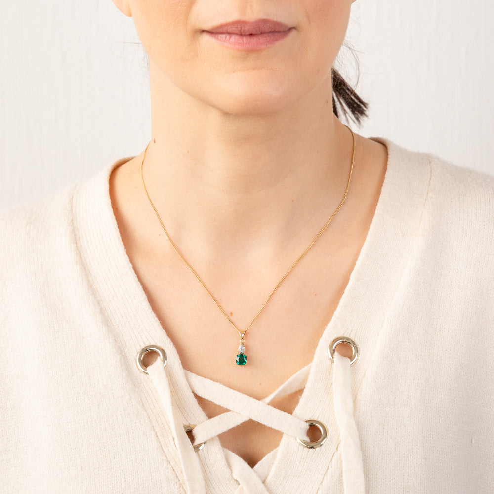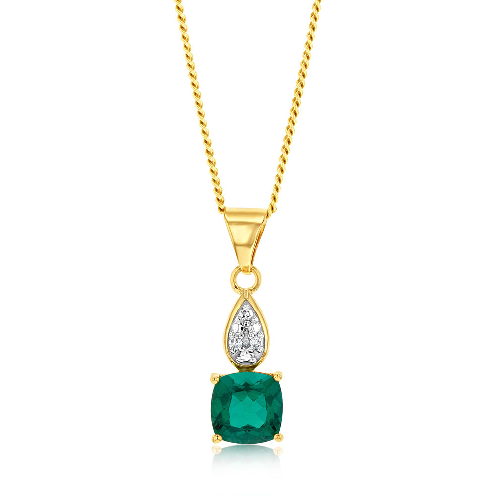 9ct Yellow Gold Created Emerald And Diamond Pendant