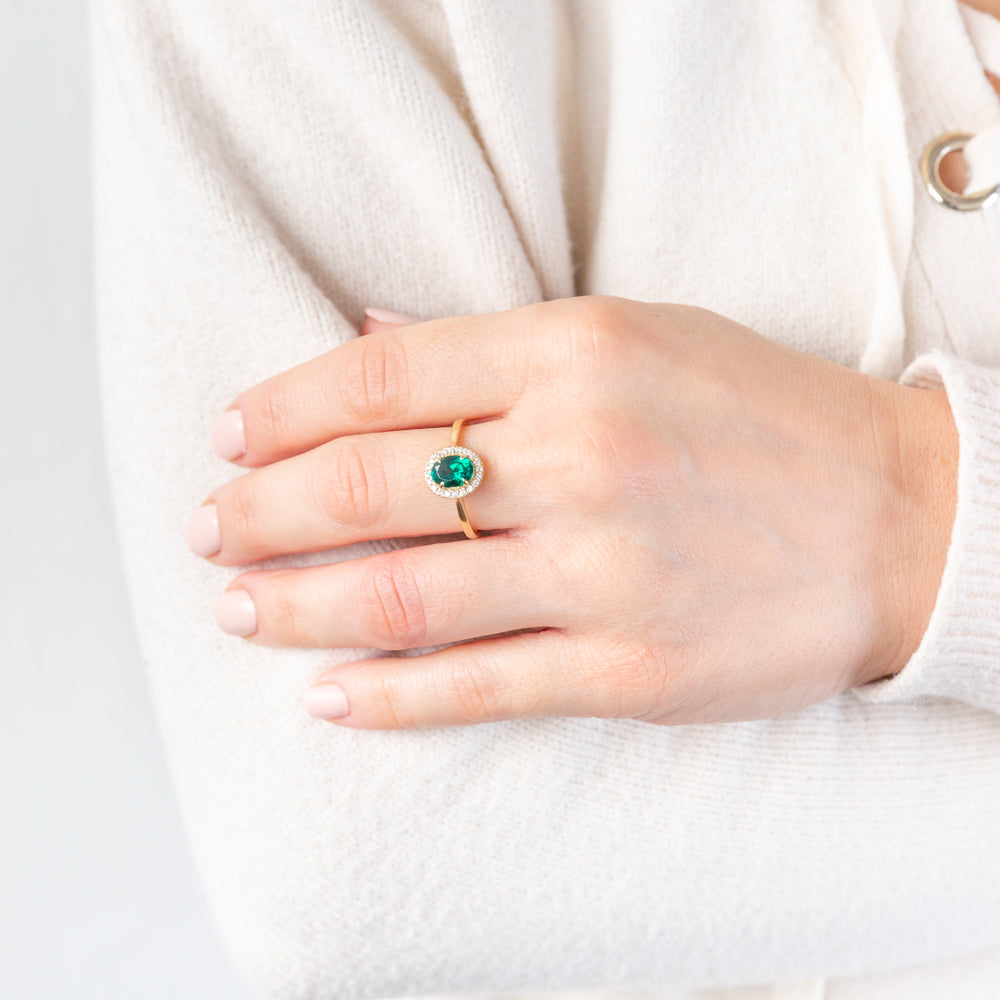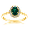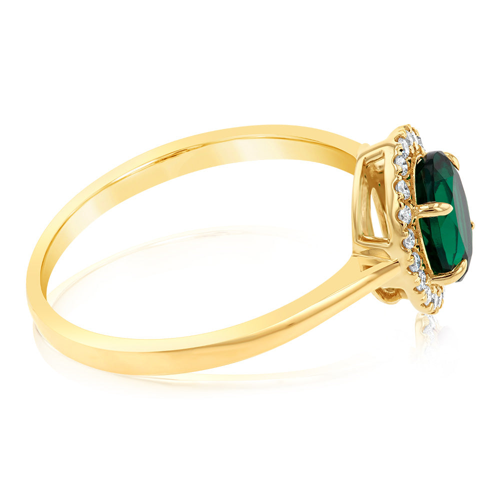 9ct Yellow Gold Created Oval Emerald And Diamond Halo Ring