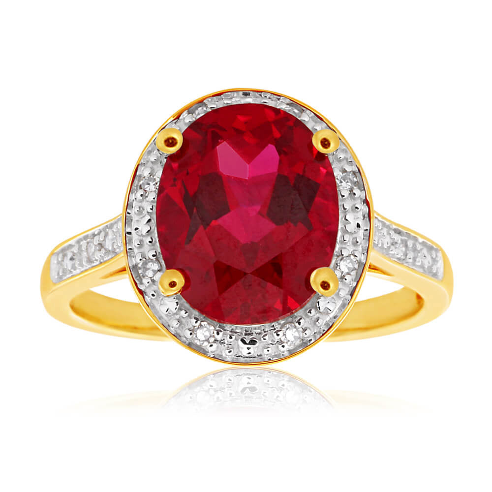 9ct Yellow Gold Created Ruby and Diamond Ring