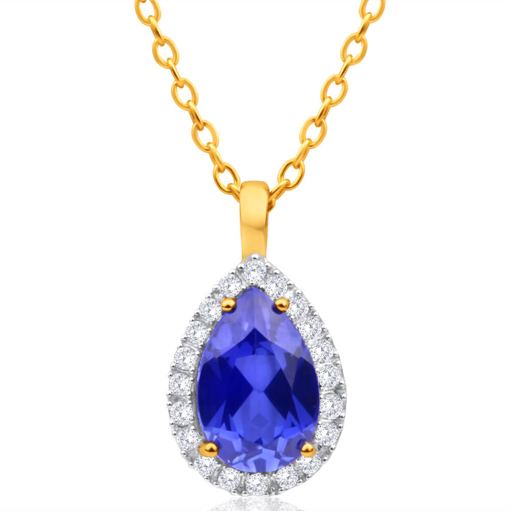 9ct Yellow Gold Created Sapphire Cubic Zirconia Pendant