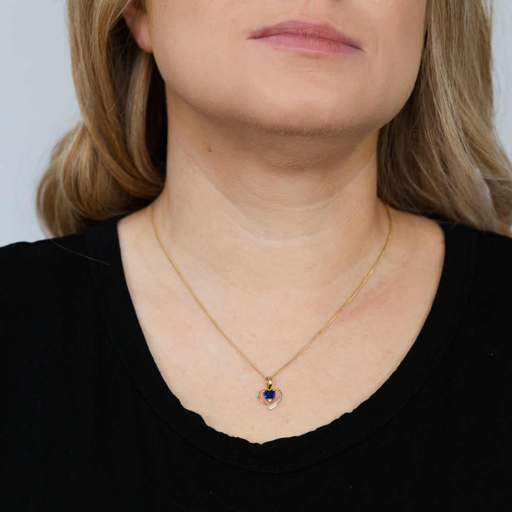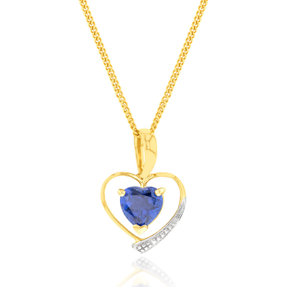 9ct Yellow Gold Created Sapphire Heart Pendant