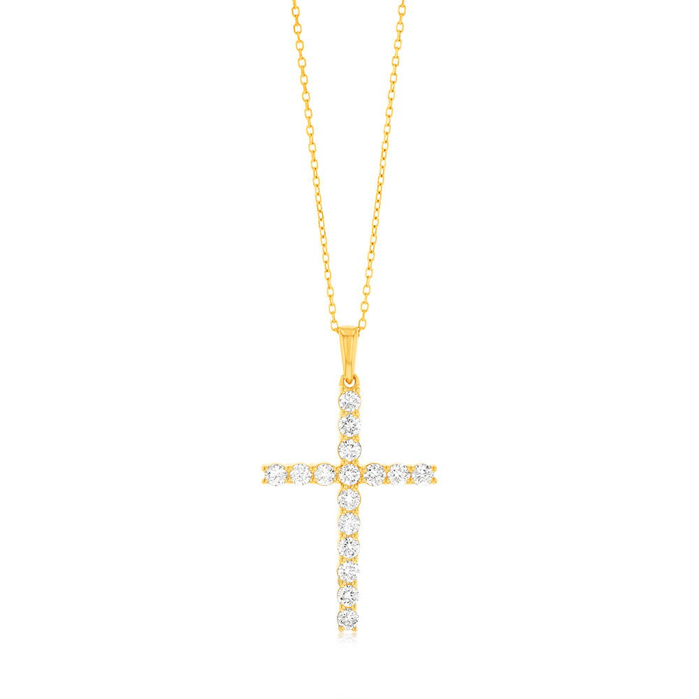 9ct Yellow Gold Cross Pendant in 16 Diamonds