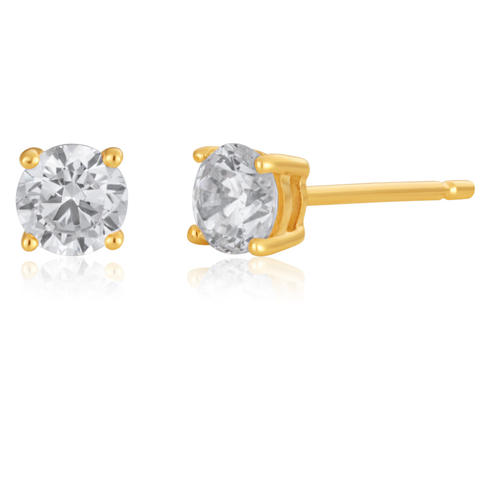 9ct Yellow Gold Cubic Zirconia 4mm Round Brilliant Cut Stud Earrings