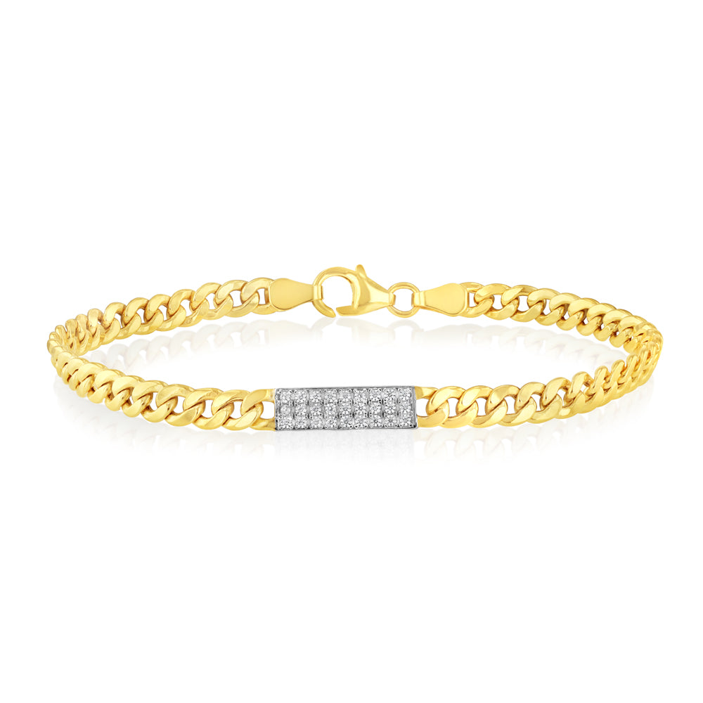 9ct Yellow Gold Cubic Zirconia 60 Gauge Curb 19cm Bracelet