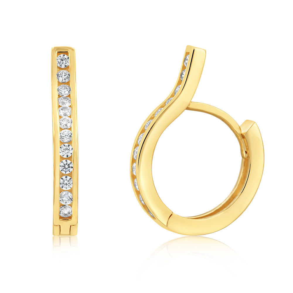 9ct Yellow Gold Cubic Zirconia Fancy Hoop Earrings