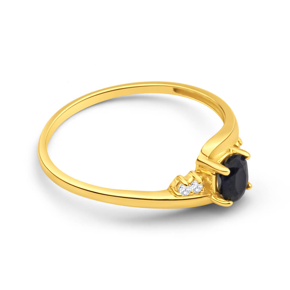9ct Yellow Gold Cubic Zirconia + Natural Black Sapphire Ring