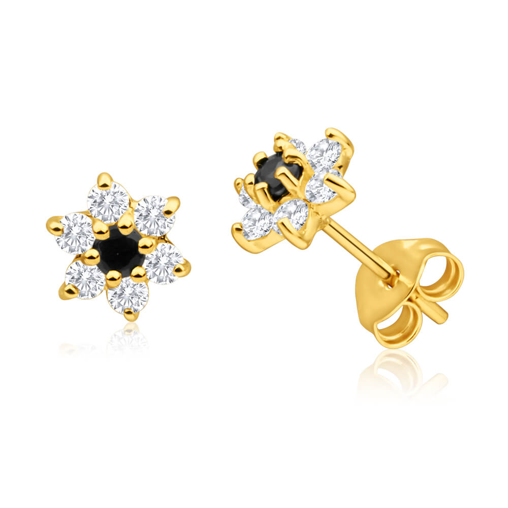9ct Yellow Gold Cubic Zirconia + Natural Sapphire Flower Stud Earrings