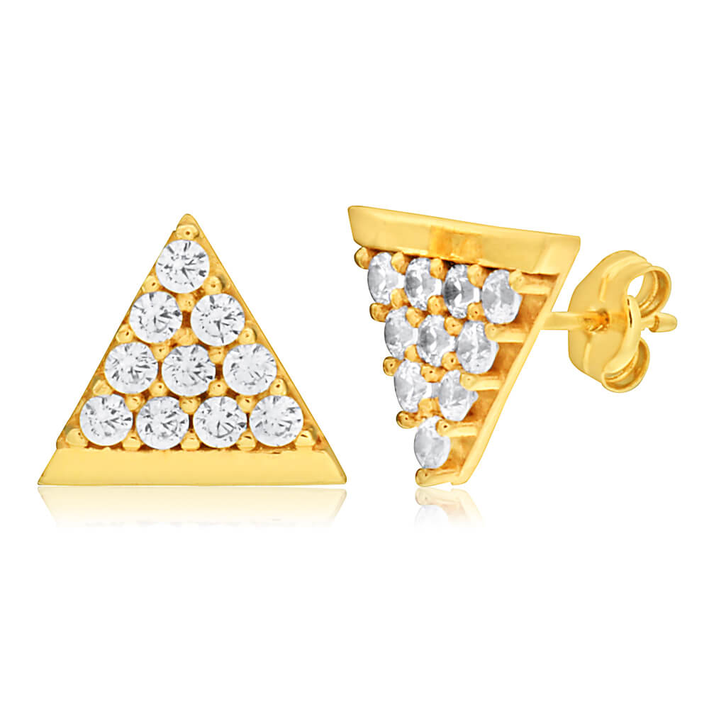 9ct Yellow Gold Cubic Zirconia stunning Pyramid Stud Earrings