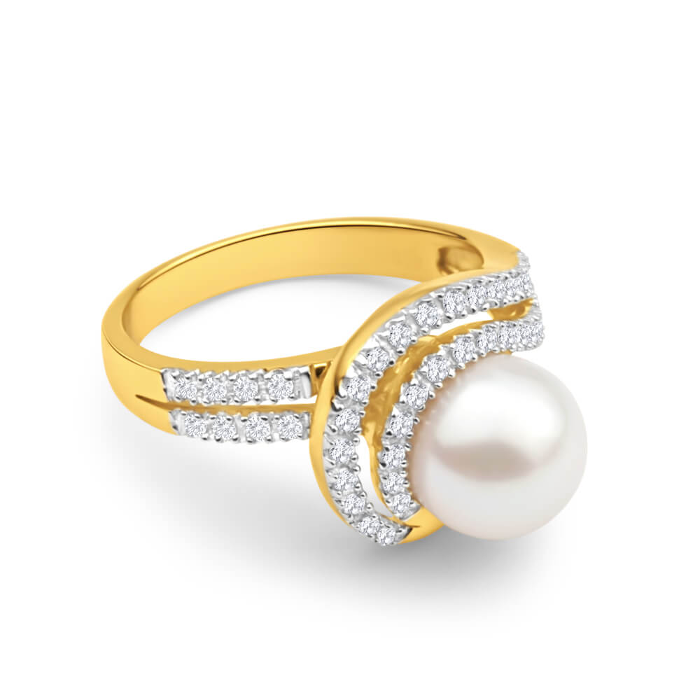 9ct Yellow Gold Cultured Pearl and Diamond Swirl Ring