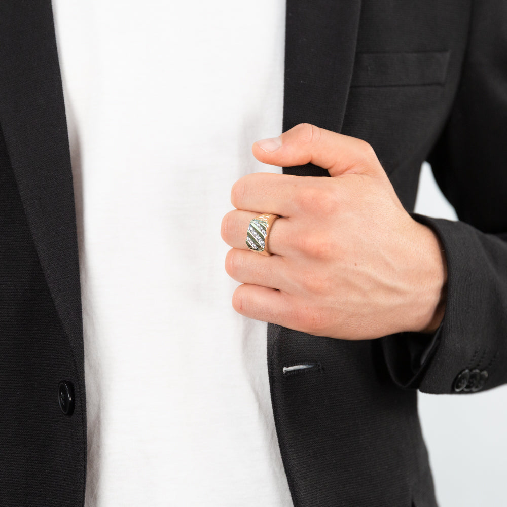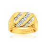 9ct Yellow Gold Diagonal Row Channel Set Cubic Zirconia Gents Ring