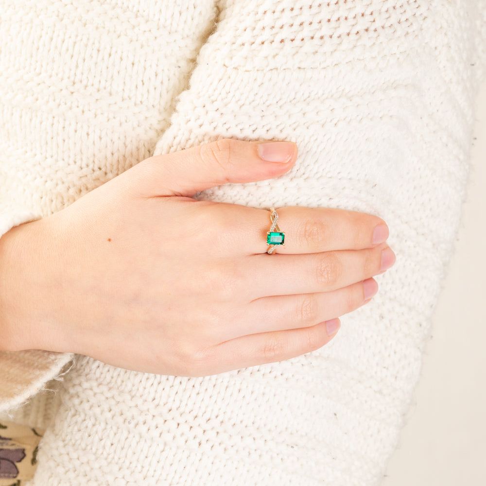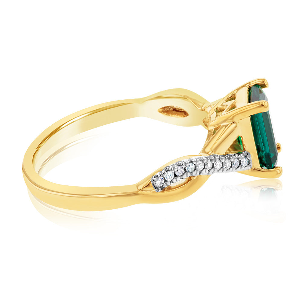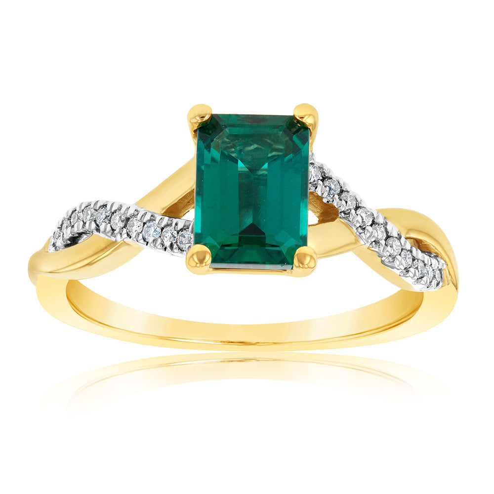 9ct Yellow Gold Diamond And Created Emerald Ring
