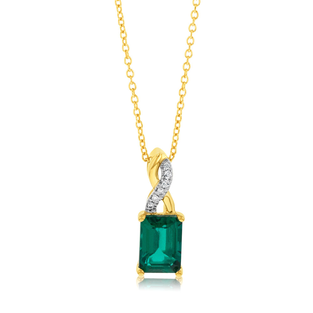 9ct Yellow Gold Diamond And Created Rectangle Pendant With Chain