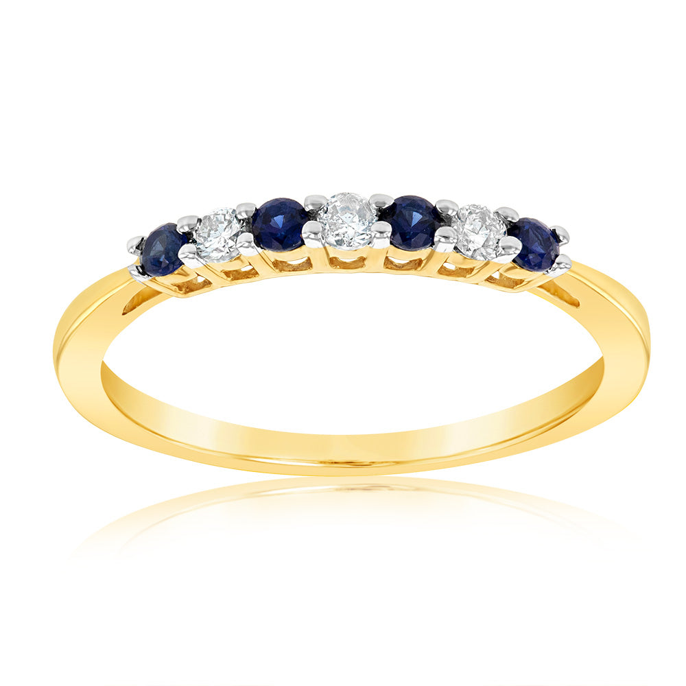 9ct Yellow Gold Diamond And Created Round Sapphire Ring