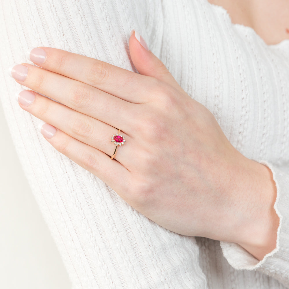 9ct Yellow Gold Diamond And Created Ruby Ring