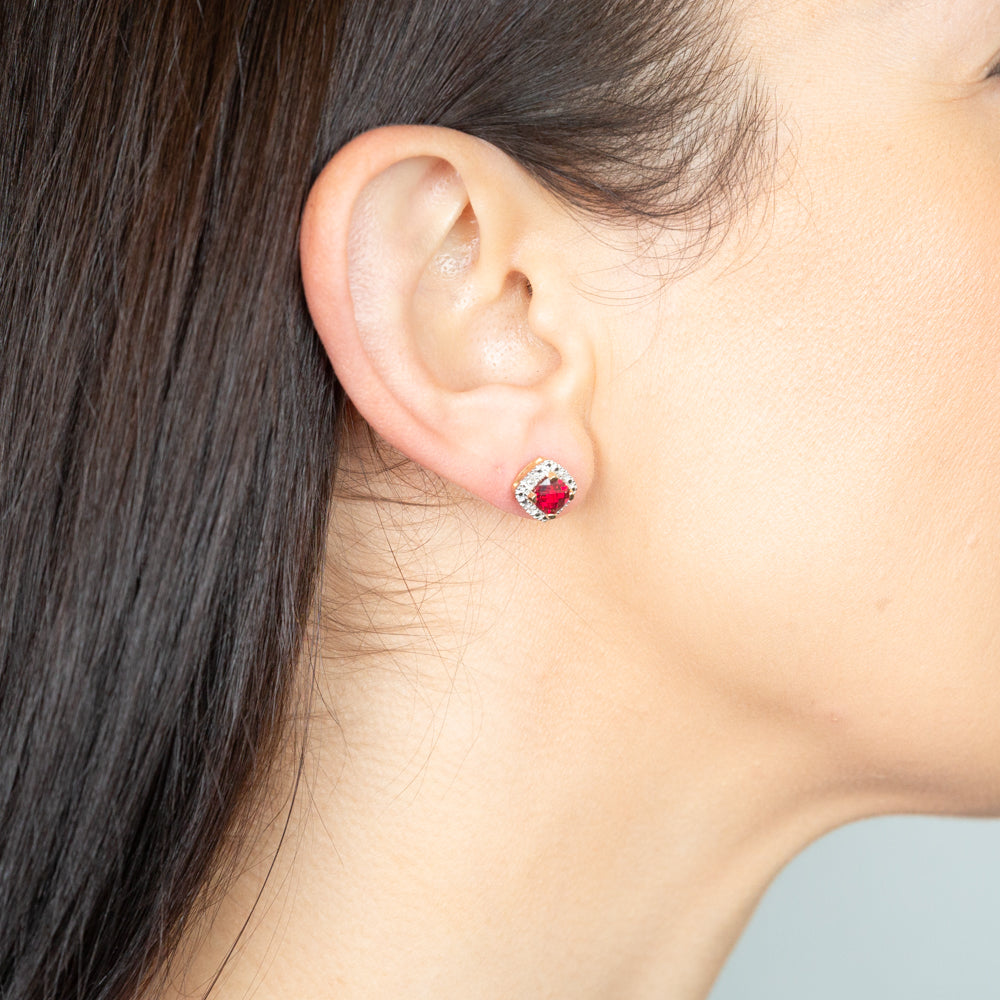 9ct Yellow Gold Diamond And Created Ruby Stud Earrings