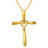 9ct Yellow Gold Diamond Cross Pendant with 1 Brilliant Diamond In Heart Shape