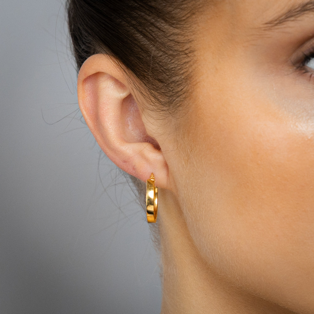 9ct Yellow Gold Diamond Cut 15mm Hoop Earrings