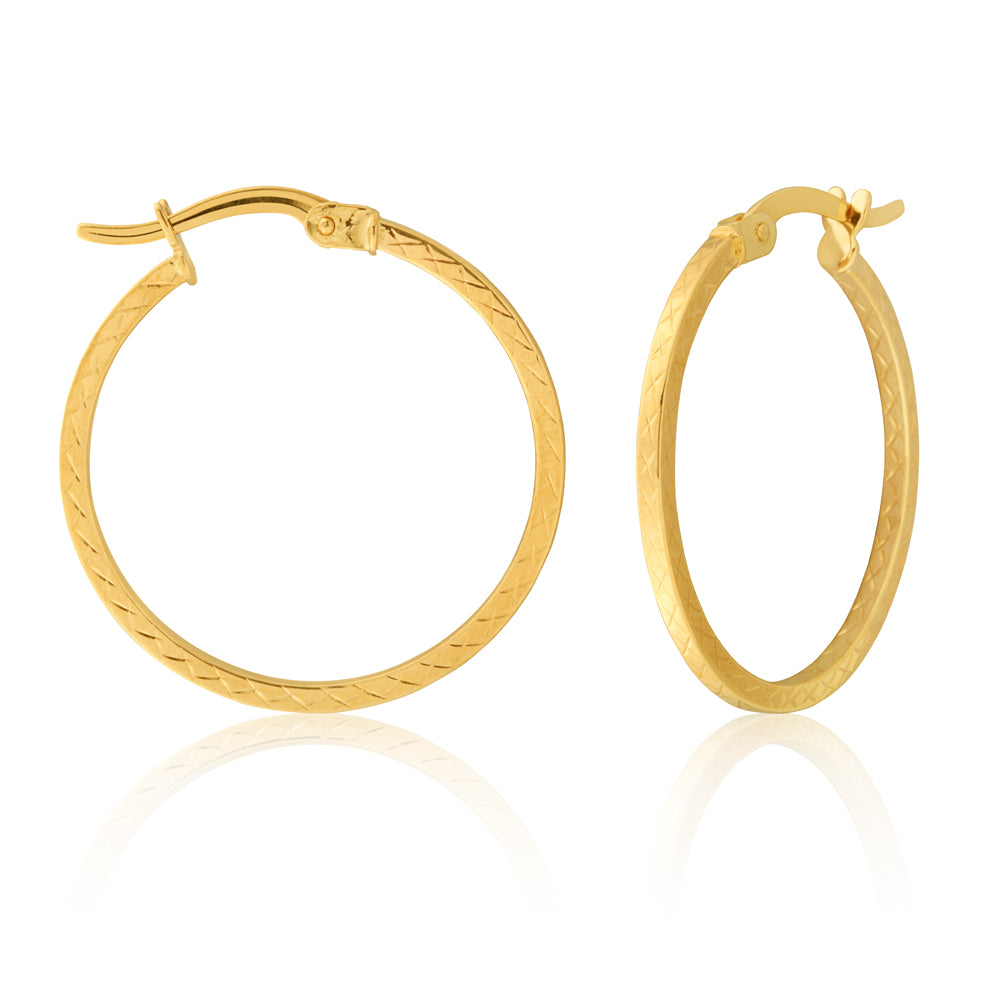 9ct Yellow Gold Diamond Cut 20mm Hoop Earrings