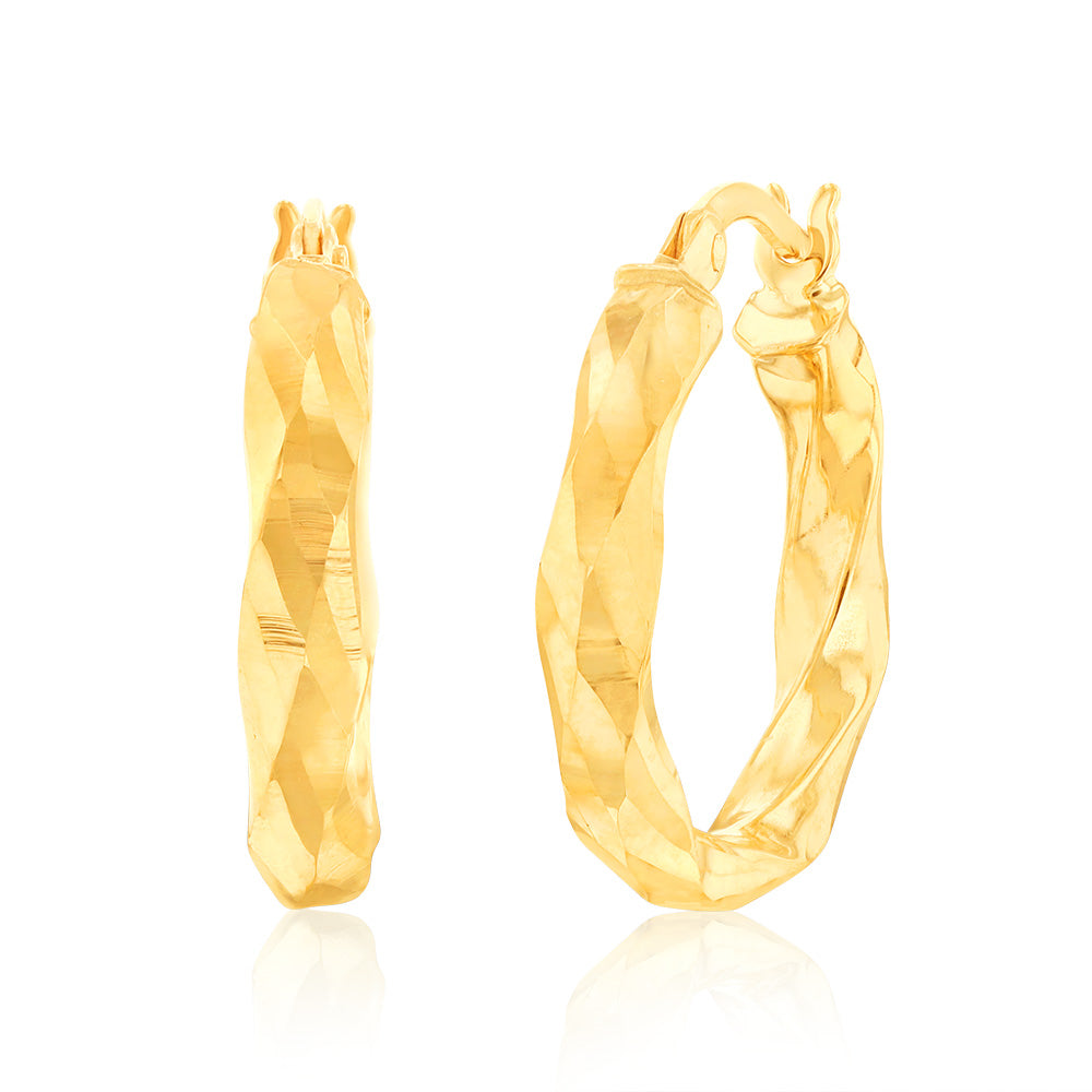 9ct Yellow Gold Diamond Cut Faceted 18.5mm Hoop Earrings