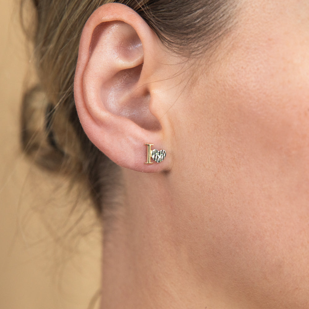 9ct Yellow Gold Diamond Cut I Love You Stud Earrings