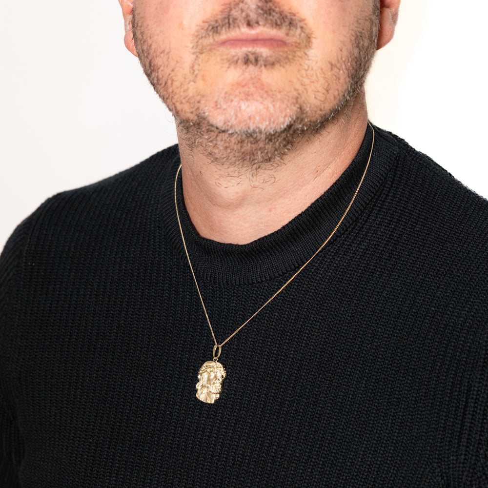 9ct Yellow Gold Diamond Cut Jesus Head Pendant