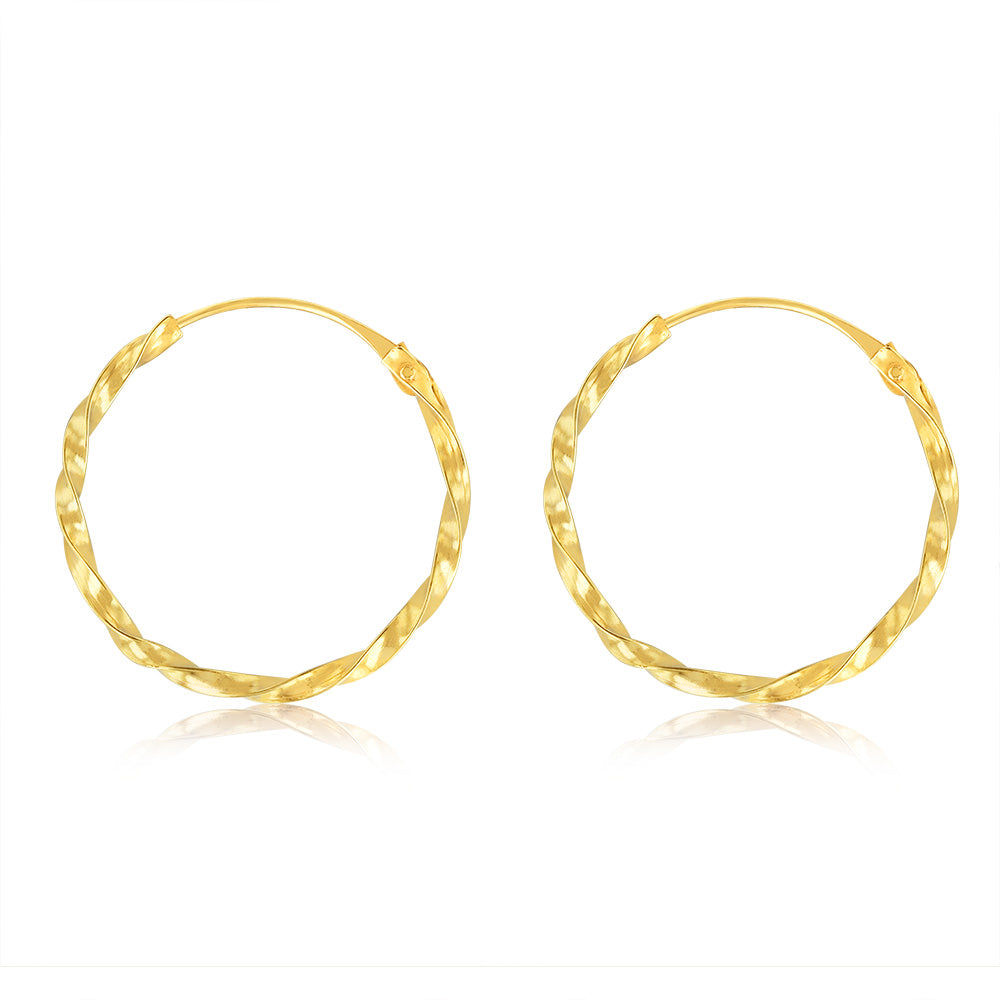 9ct Yellow Gold Diamond Cut Twisted 1.25 X 18mm Sleeper Hoop Earrings