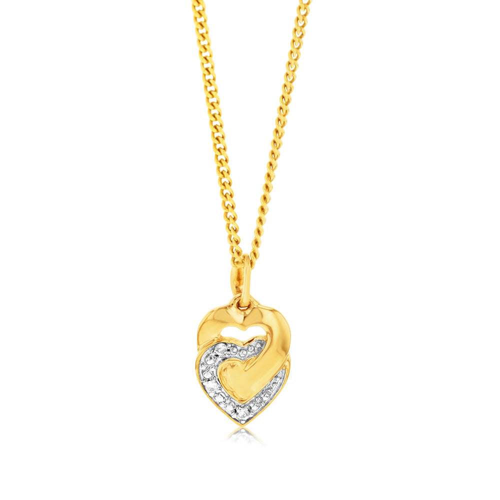 9ct Yellow Gold Diamond Heart Pendant with 3 Brilliant Diamonds