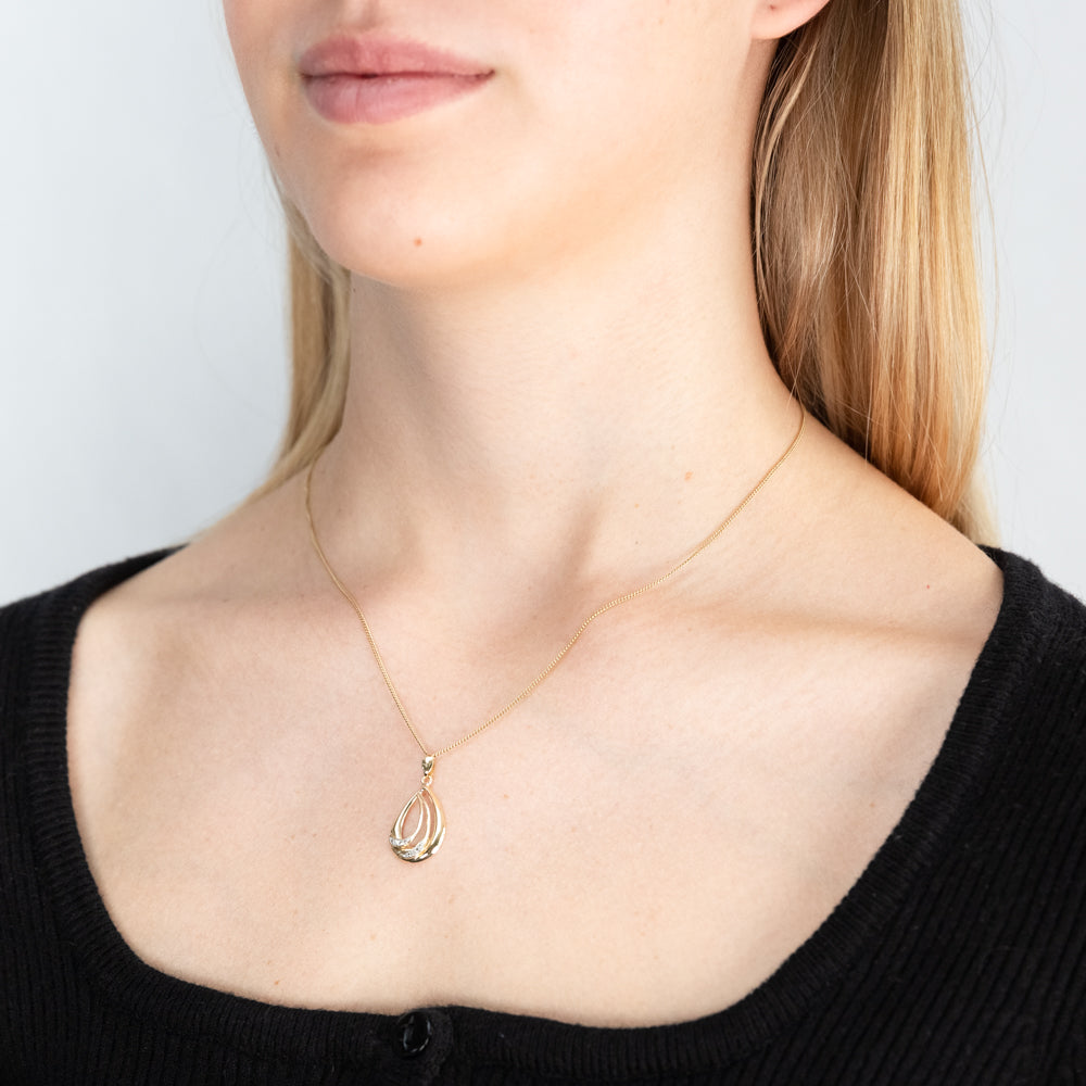 Features • The pendant features a tear-drop shape in Yellow Gold that is sure to catch glances