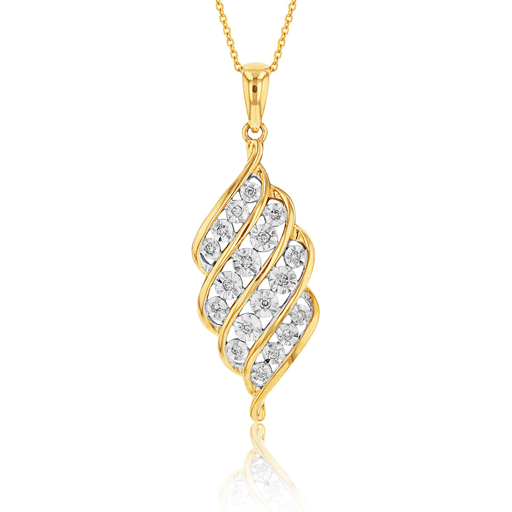 9ct Yellow Gold Diamond Pendant with 18 Brilliant Diamonds on 45cm Chain
