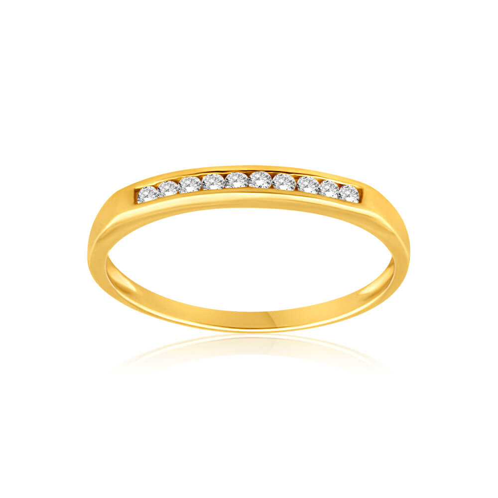 9ct Yellow Gold Diamond Ring Set with 10 Stunning Brilliant Diamonds