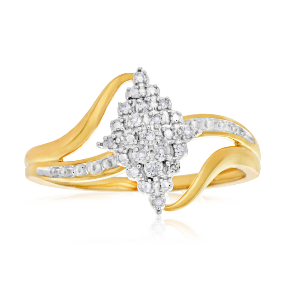 9ct Yellow Gold Diamond Ring Set with 15 Brilliant Cut Diamonds