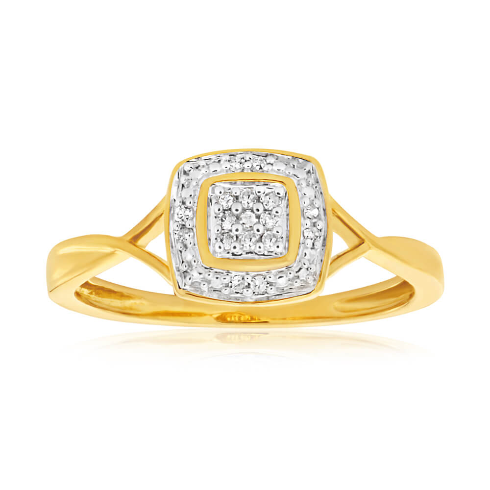 9ct Yellow Gold Diamond Ring Set with 17 Stunning Brilliant Diamonds