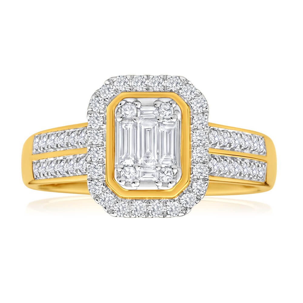 9ct Yellow Gold Diamond Ring Set With 61 Diamonds