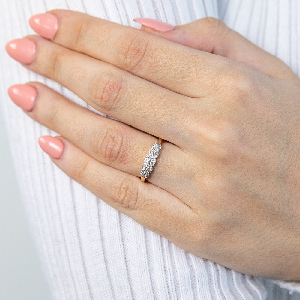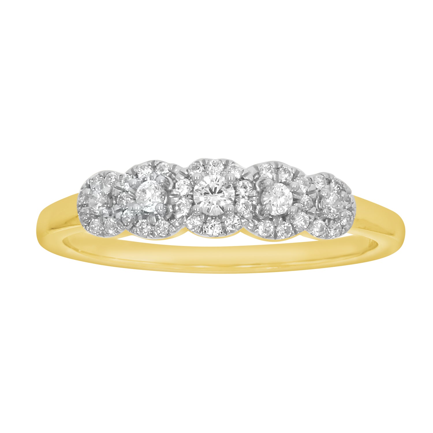 9ct Yellow Gold Diamond Ring with 5 Brilliant Diamonds surrounded by Diamond Halos