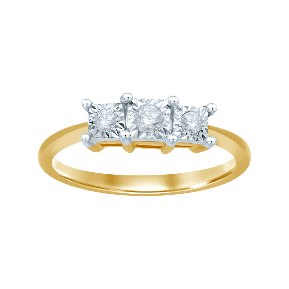 9ct Yellow Gold Diamond Trilogy Ring with 3 Brilliant Diamonds in Disc Setting