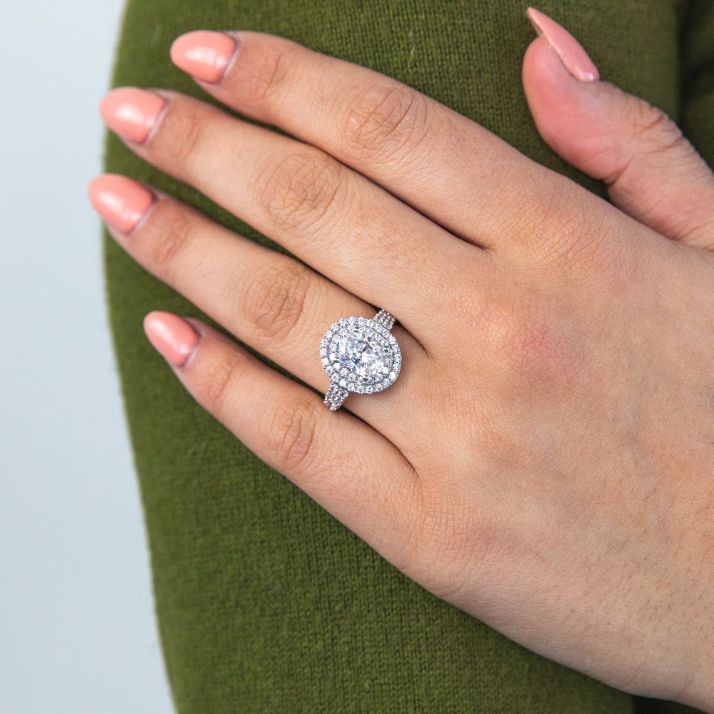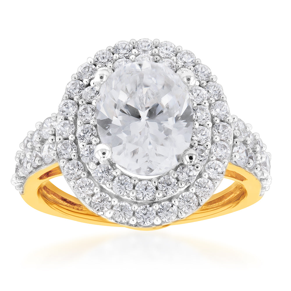 9ct Yellow Gold Double Halo 9x7mm Oval Zirconia Ring