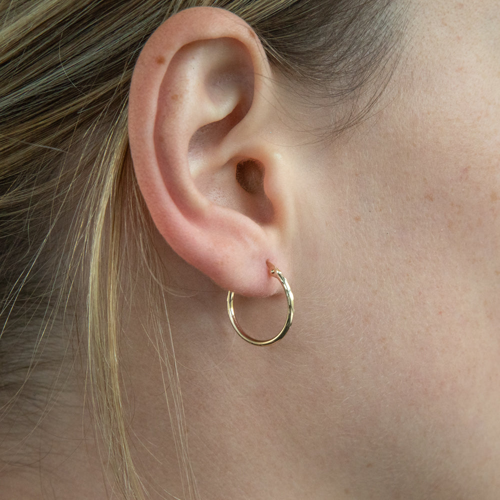 9ct Yellow Gold Double Side Diamond Cut 15mm Hoop Earrings