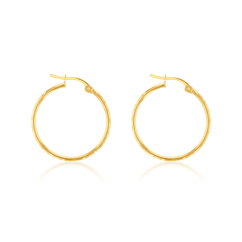 9ct Yellow Gold Double side Diamond Cut 20mm Hoop Earrings