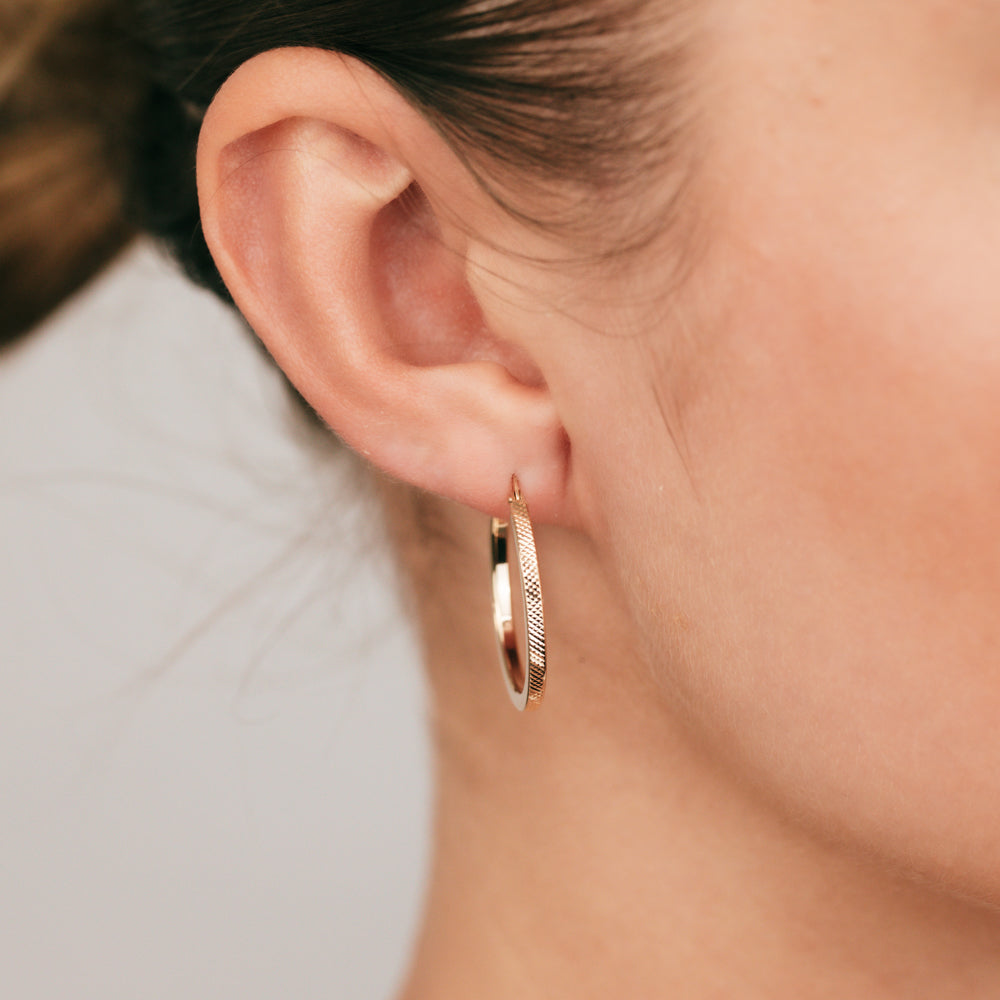 9ct Yellow Gold Double Side Diamond Cut 20mm Hoop Earrings