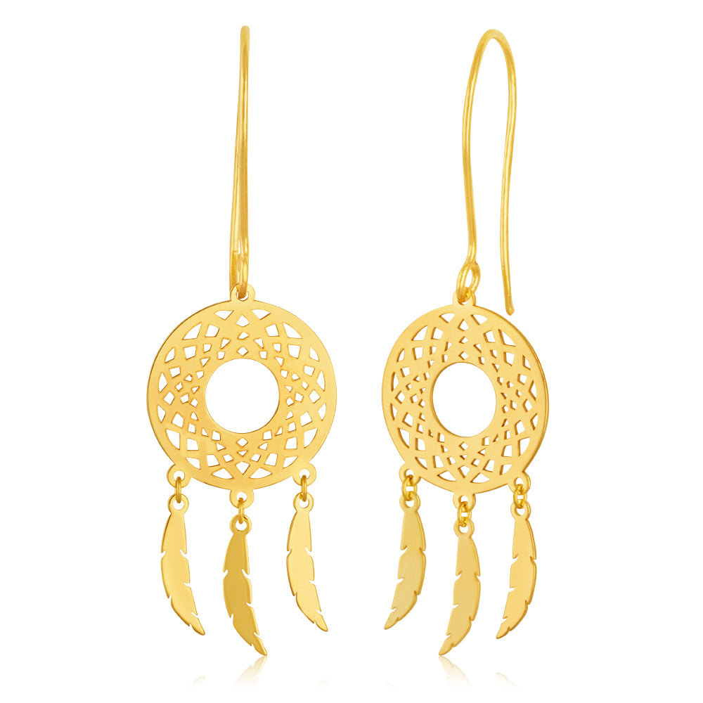 These 9ct Yellow Gold Dream Catcher Drop Earrings are the perfect touch to your boho outfit.