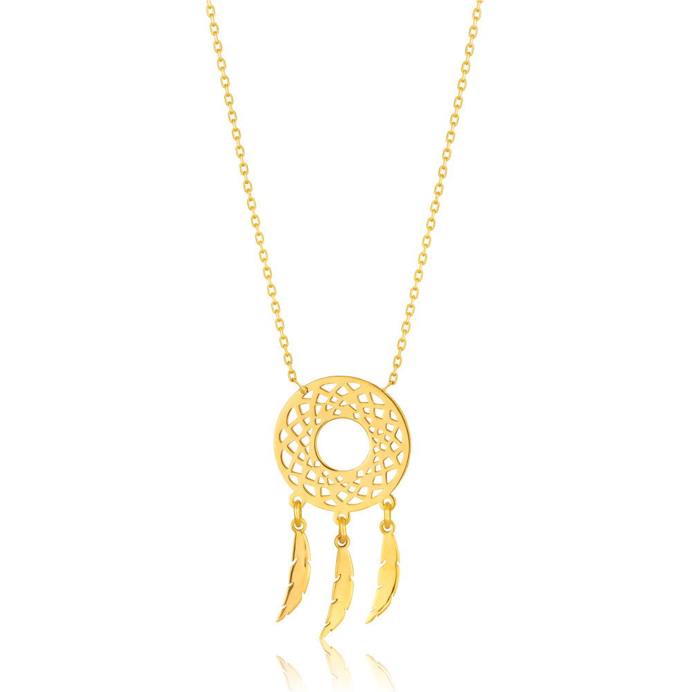 9ct Yellow Gold Dreamcatcher & Feather Pendant With 45cm chain