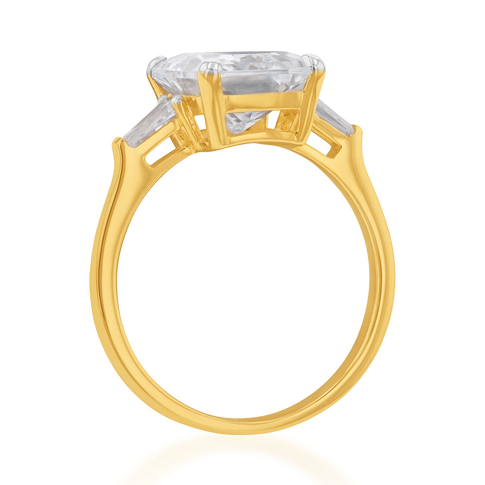 9ct Yellow Gold Emerald Cut and Baguette Zirconia Fancy Ring