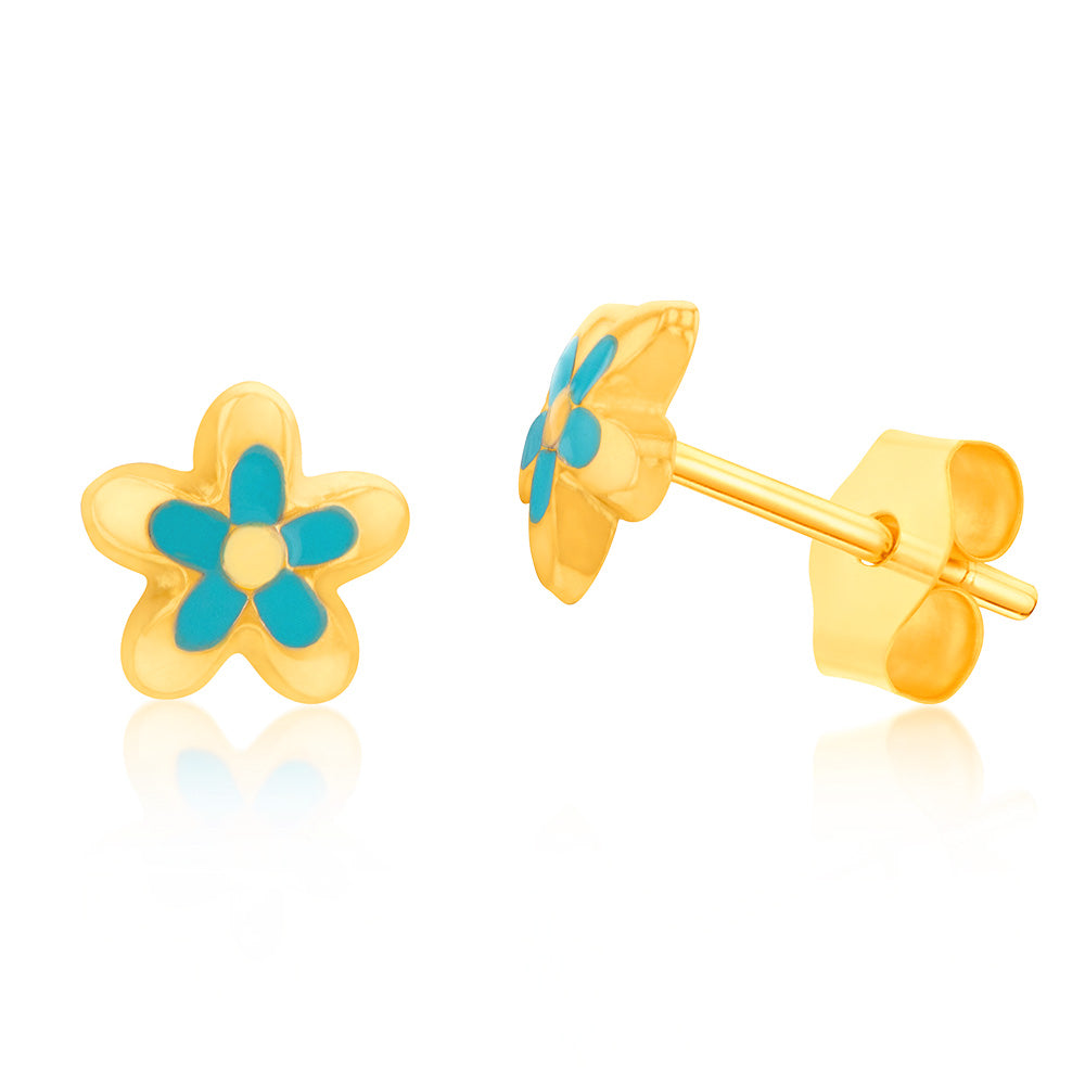 9ct Yellow Gold Enamel 7mm Flower Stud Earrings