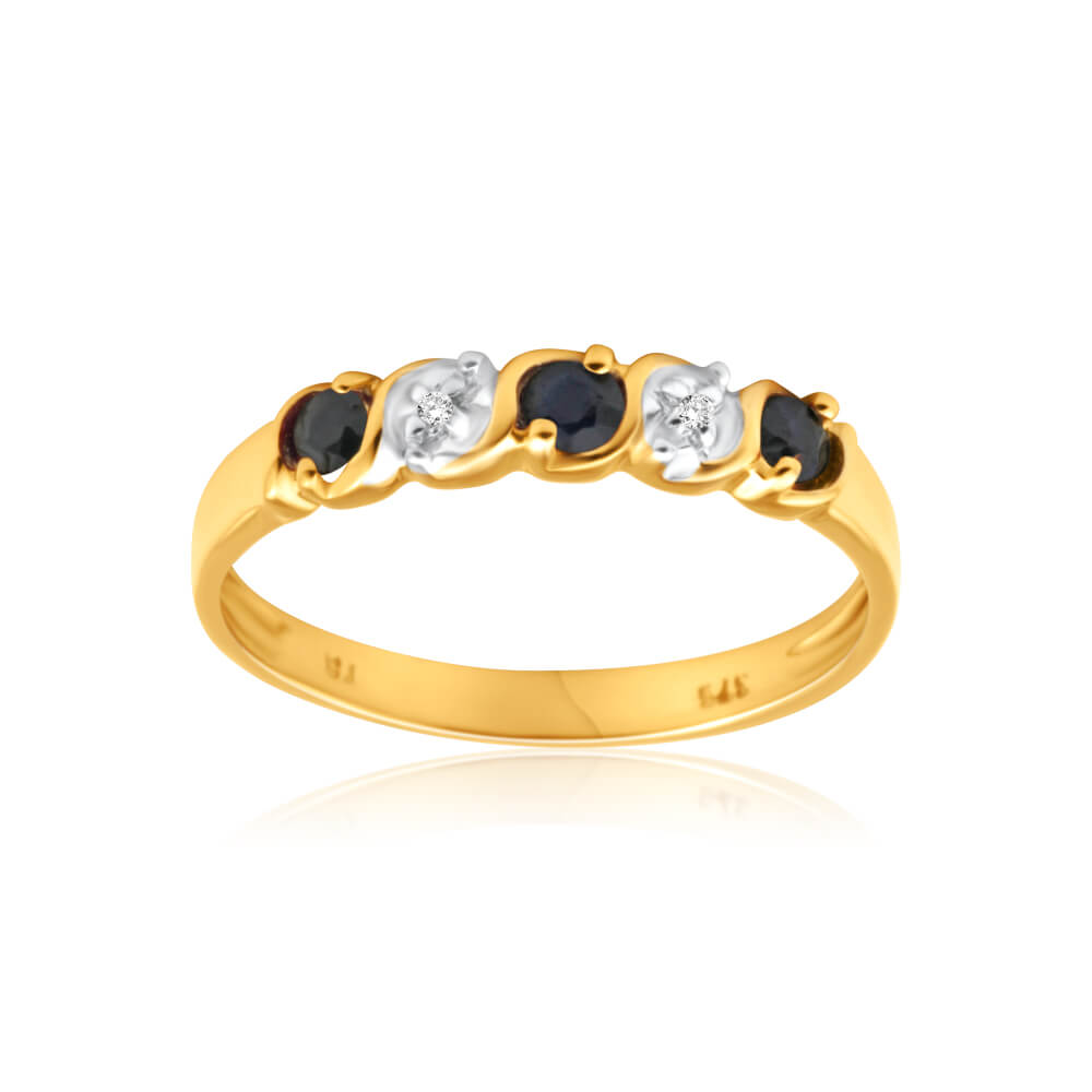9ct Yellow Gold Exquisite Diamond + Natural Sapphire Ring