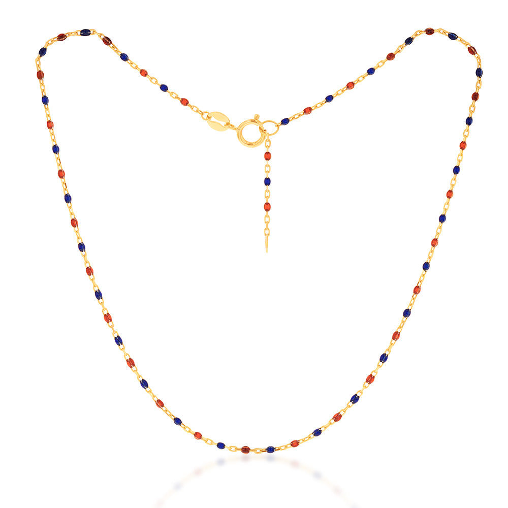 9ct Yellow Gold Fancy Red And Blue Bead Anklet