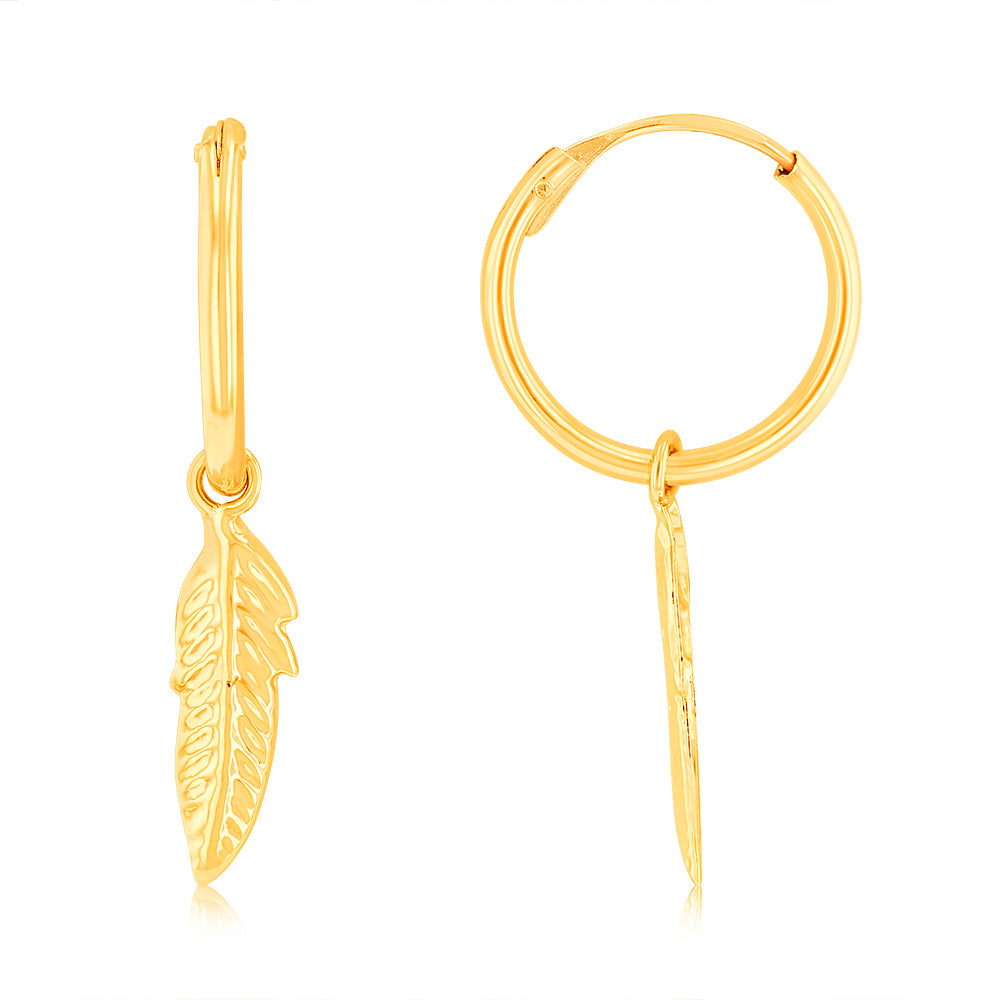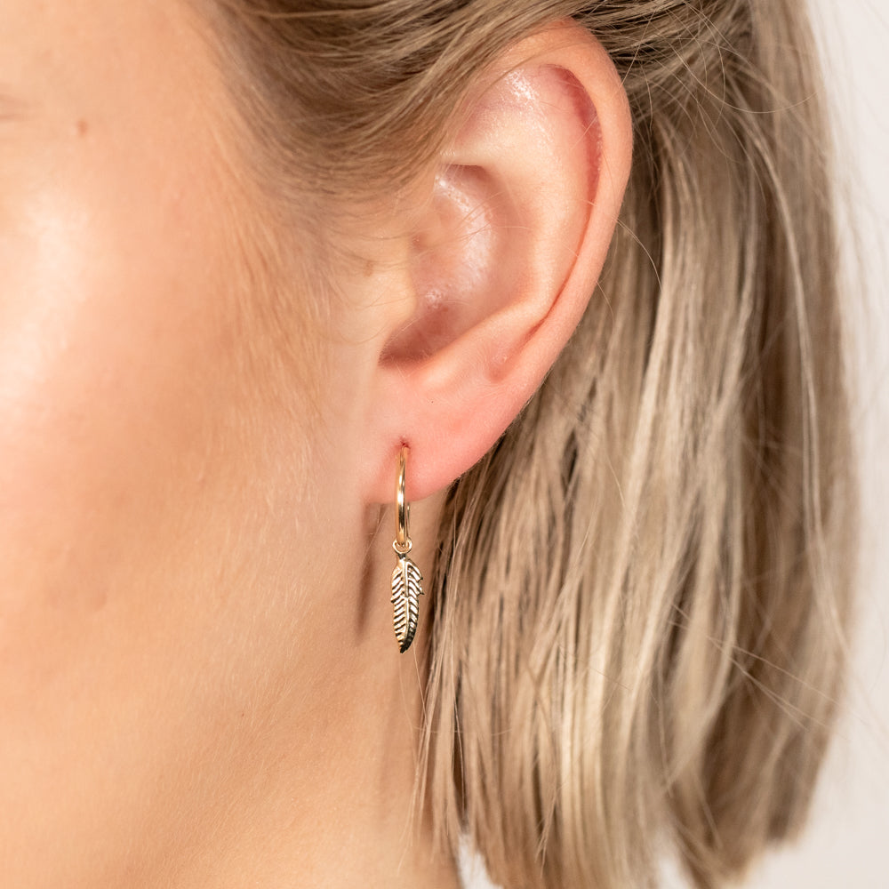 9ct Yellow Gold Feather on 12mm Sleeper Earrings