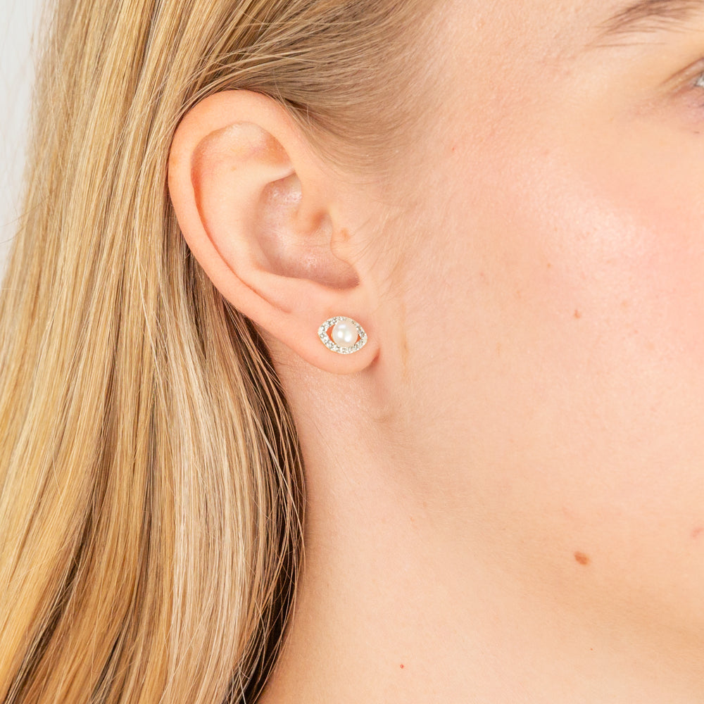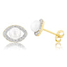 9ct Yellow Gold Fresh Water Pearl And Crystal Elliptical Stud Earrings