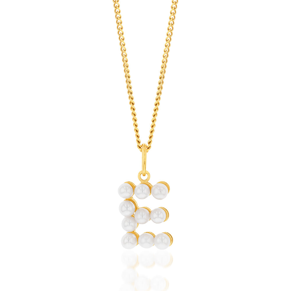 9ct Yellow Gold Fresh Water Pearl Mini Initial "E" Pendant
