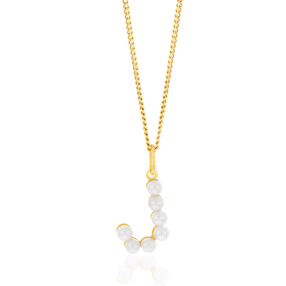 9ct Yellow Gold Fresh Water Pearl Mini Initial "J" Pendant